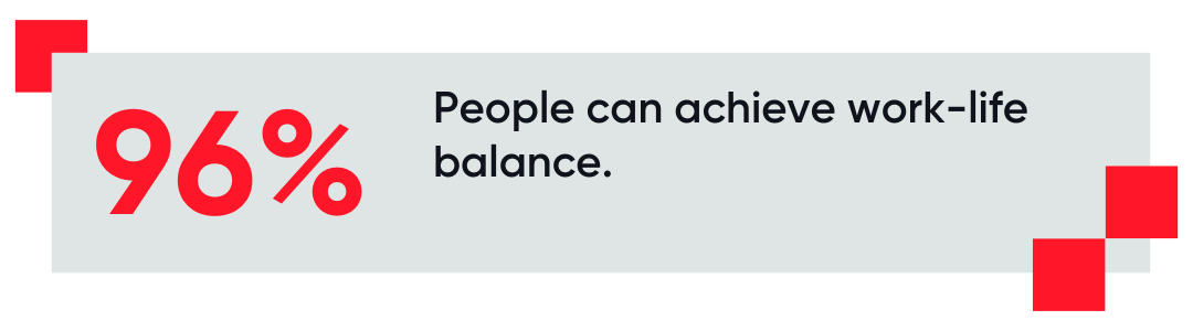 The responses received via the Trust Index™ Survey show that 96% of the respondents feel that they can achieve work-life balance, emphasizing the importance of such programs.