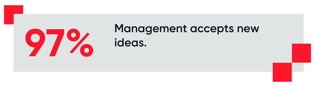 - Offering opportunities for creativity: Create time for employees to pursue creative projects. It is estimated that 97% of the employees in the Best Workplaces™ for Millennials see that their management accepts new ideas.