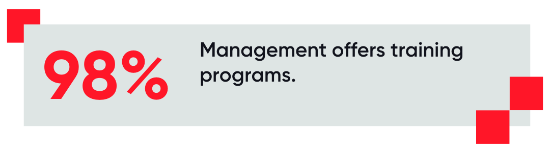 - Offering career development opportunities to upskill millennials’ work. Millennials care for their professional growth. Coaching and training programs can significantly boost their well-being and retention. Research has shown that 98% of the employees in the Best Workplaces™ for Millennials believe that their management offers them suitable training. By providing targeted training and development opportunities, organizations equip millennials with the skills and knowledge necessary to excel in their roles and advance their careers.