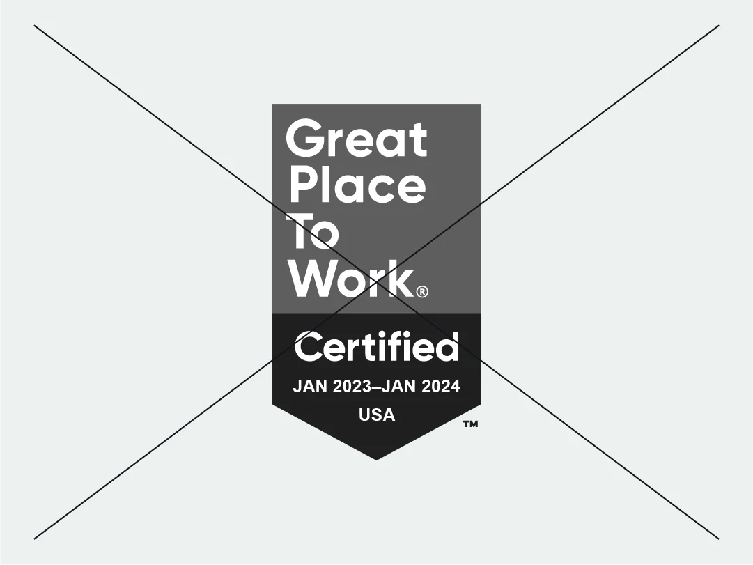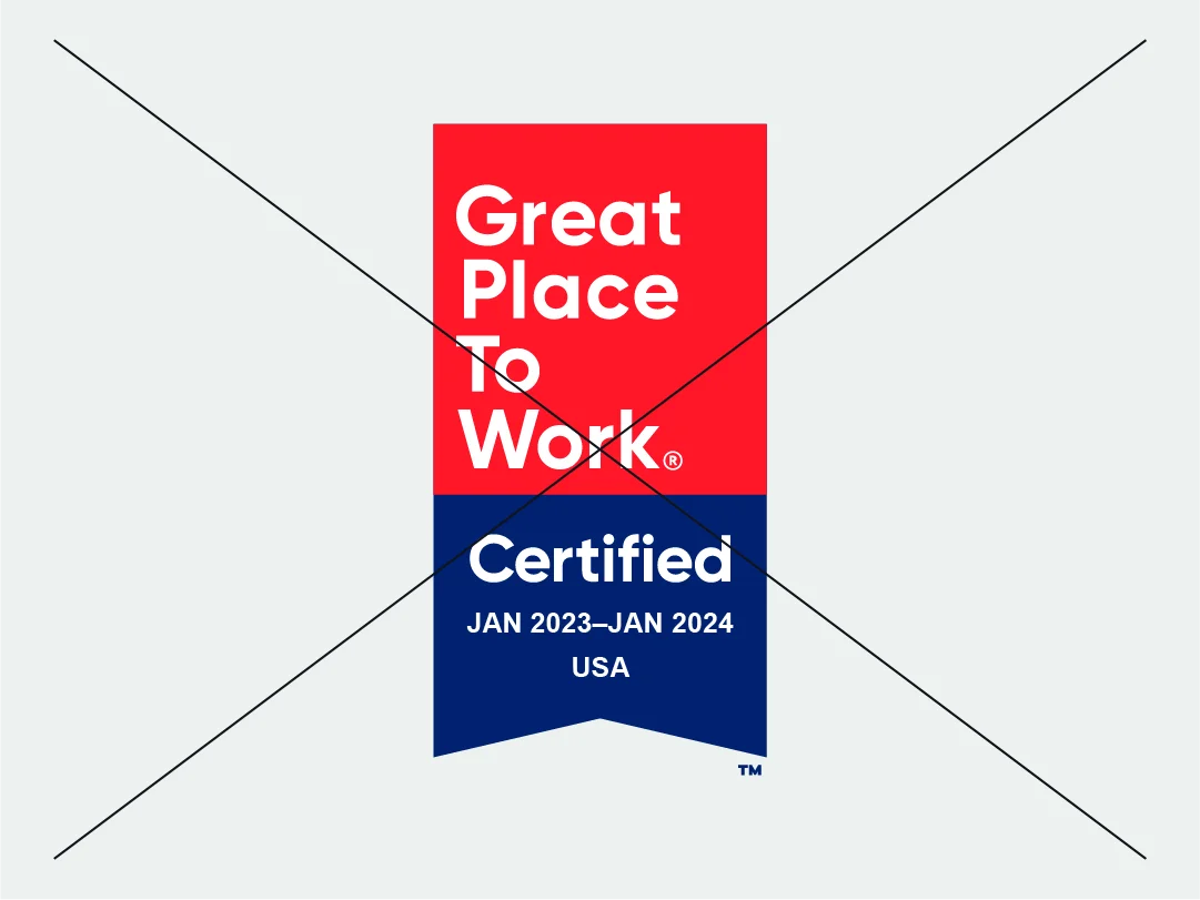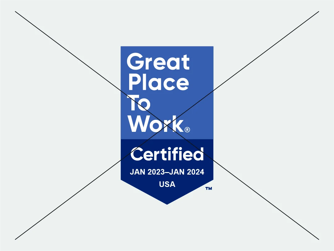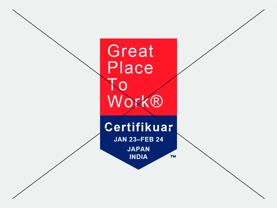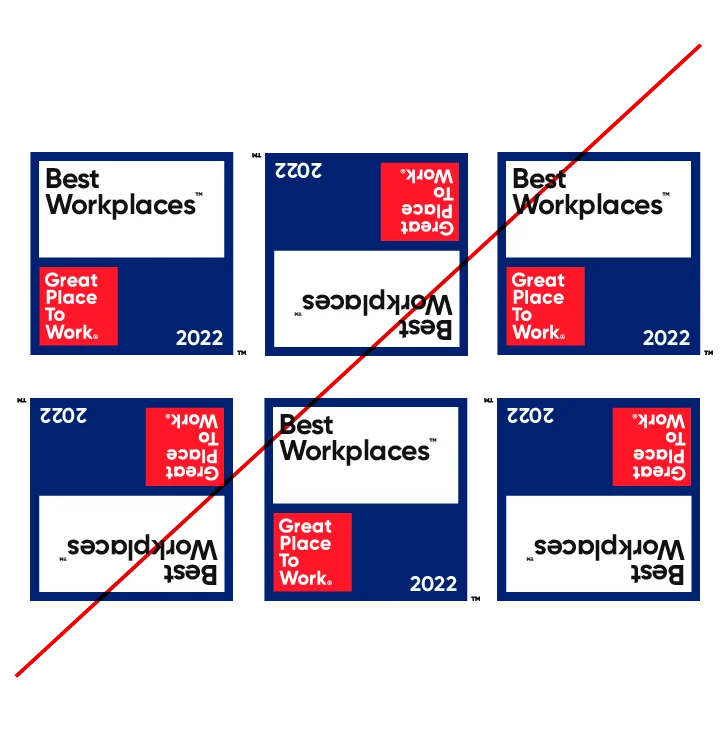 لضمان الاتساق في تطبيق هويتنا البصرية، من الضروري عدم إجراء أي تعديلات على العلامات التجارية الخاصة بنا بأي شكل من الأشكال. يرجى مراعاة أن أي استخدام غير صحيح لشاراتنا يقلل من قوة علامة ®Great Place To Work وتأثيرها. ويجب دائمًا إعادة إنتاج جميع شاراتنا من ملف التصميم الأصلي المعتمد.