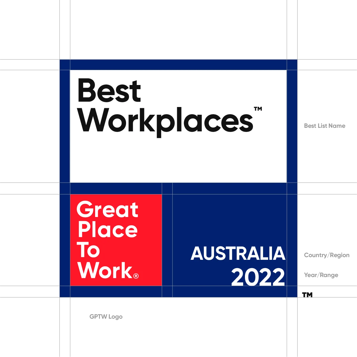 تم تصميم شارات القوائم الوطنية بصيغة مربعة، مع وضع شعار ®Great Place To Work في الزاوية السفلية اليسرى. يُخصص النصف العلوي من الشارة لكتابة عنوان القائمة واسمها، بينما تُخصص الزاوية السفلية اليمنى لاسم الدولة والسنة.