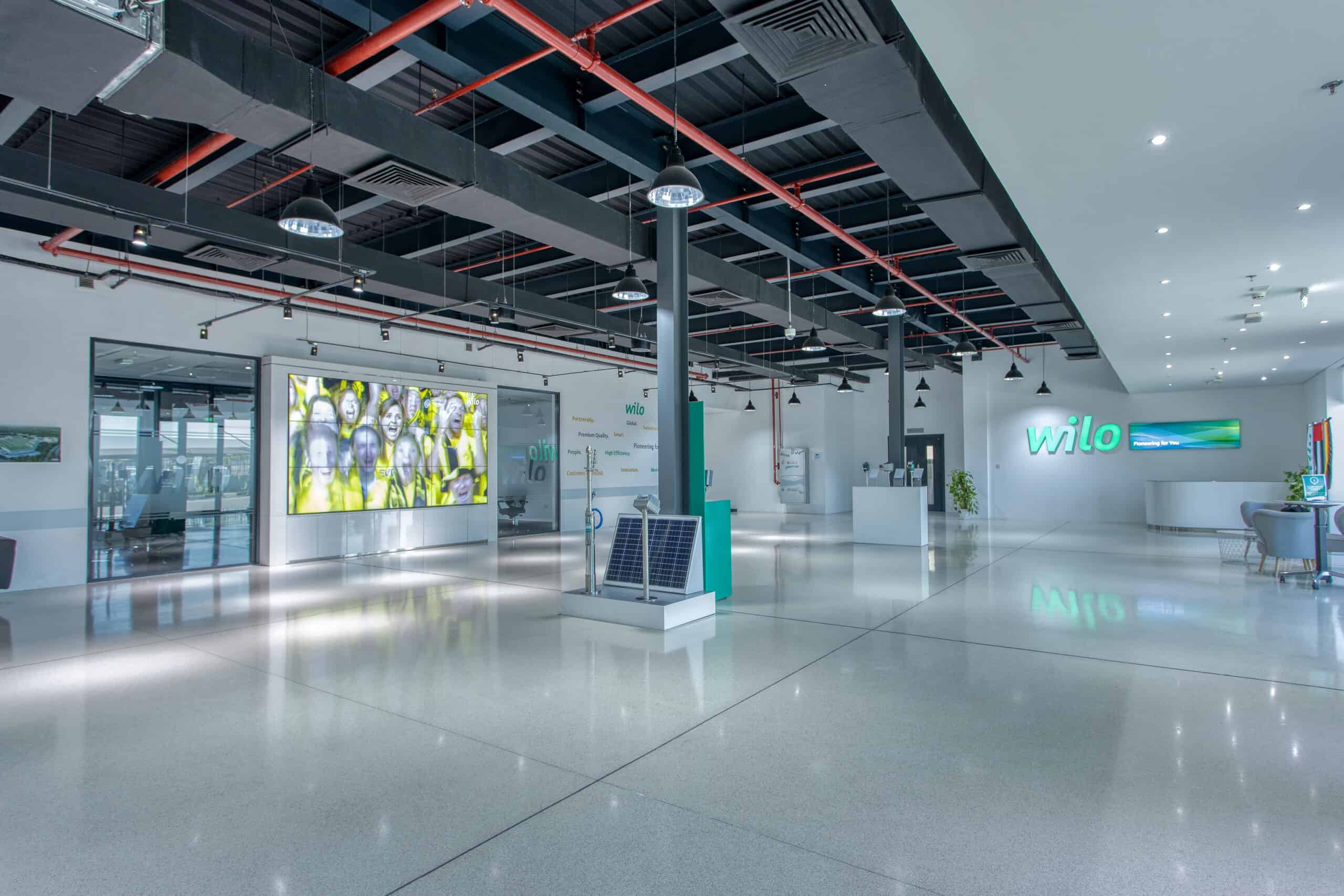 The new Wilo Facility in JAFZA, Dubai includes: Office Rooms, Warehouse, Training Facility, Wilo Academy, production Facility, Service Facility, and Testing Facility.